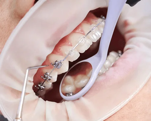 Braces are a traditional orthodontic treatment that uses metal brackets and wires to straighten teeth. Brackets are attached to your teeth, and wires are threaded through them to apply pressure and gradually move teeth into alignment.
